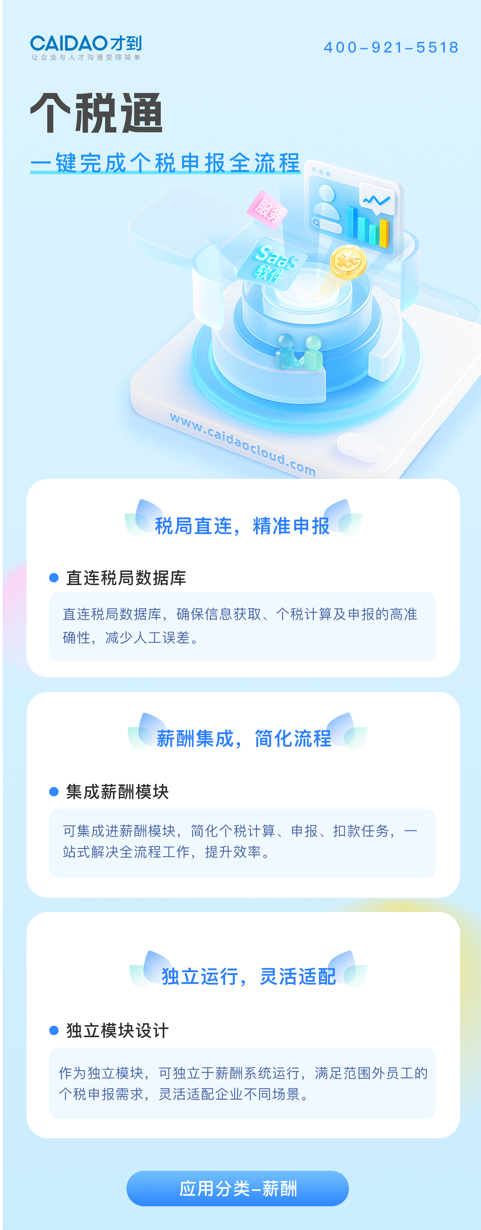 如果您希望深入了解才到云HR SaaS+BPO人力资源管理解决方案,欢迎致电 400-921-5518,或扫码预约演示,期待与您交流~