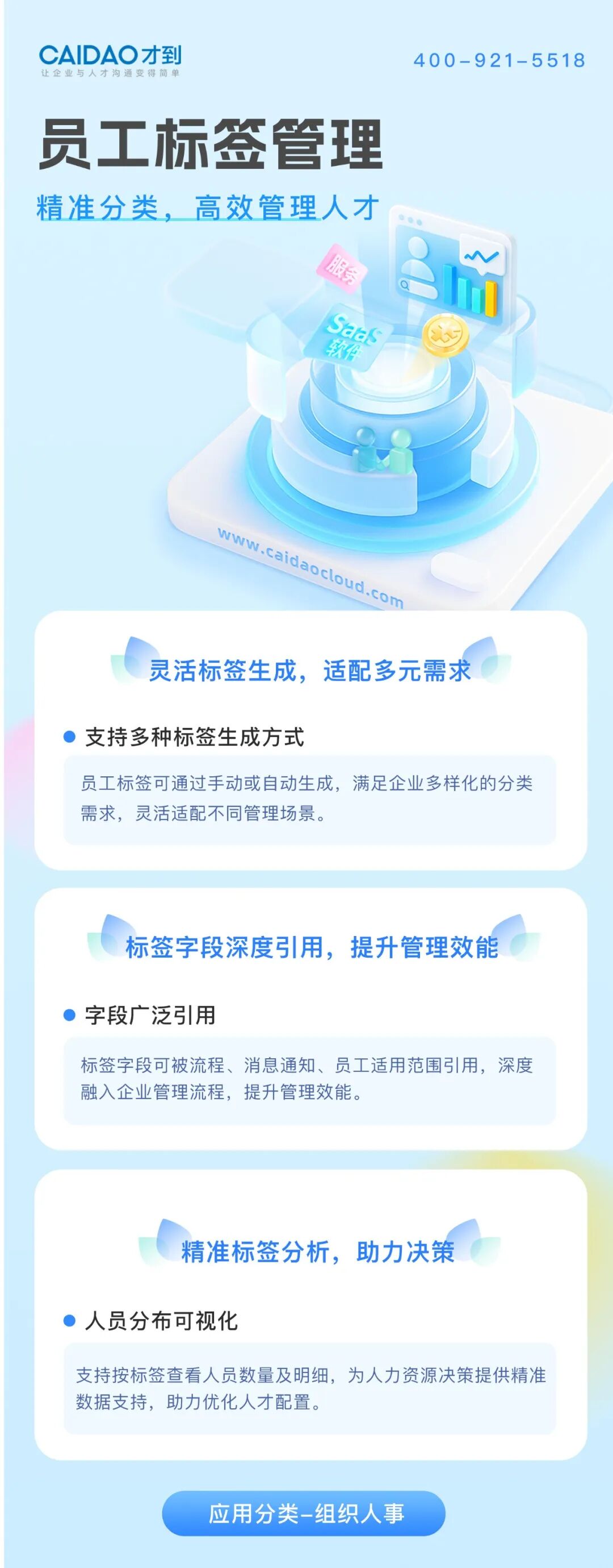 如果您希望深入了解才到云HR SaaS+BPO人力资源管理解决方案,欢迎致电 400-921-5518,或扫码预约演示,期待与您交流~